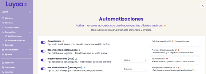 3. Actívalos haciendo que se marque el botón morado y, ¡listo! 🎉